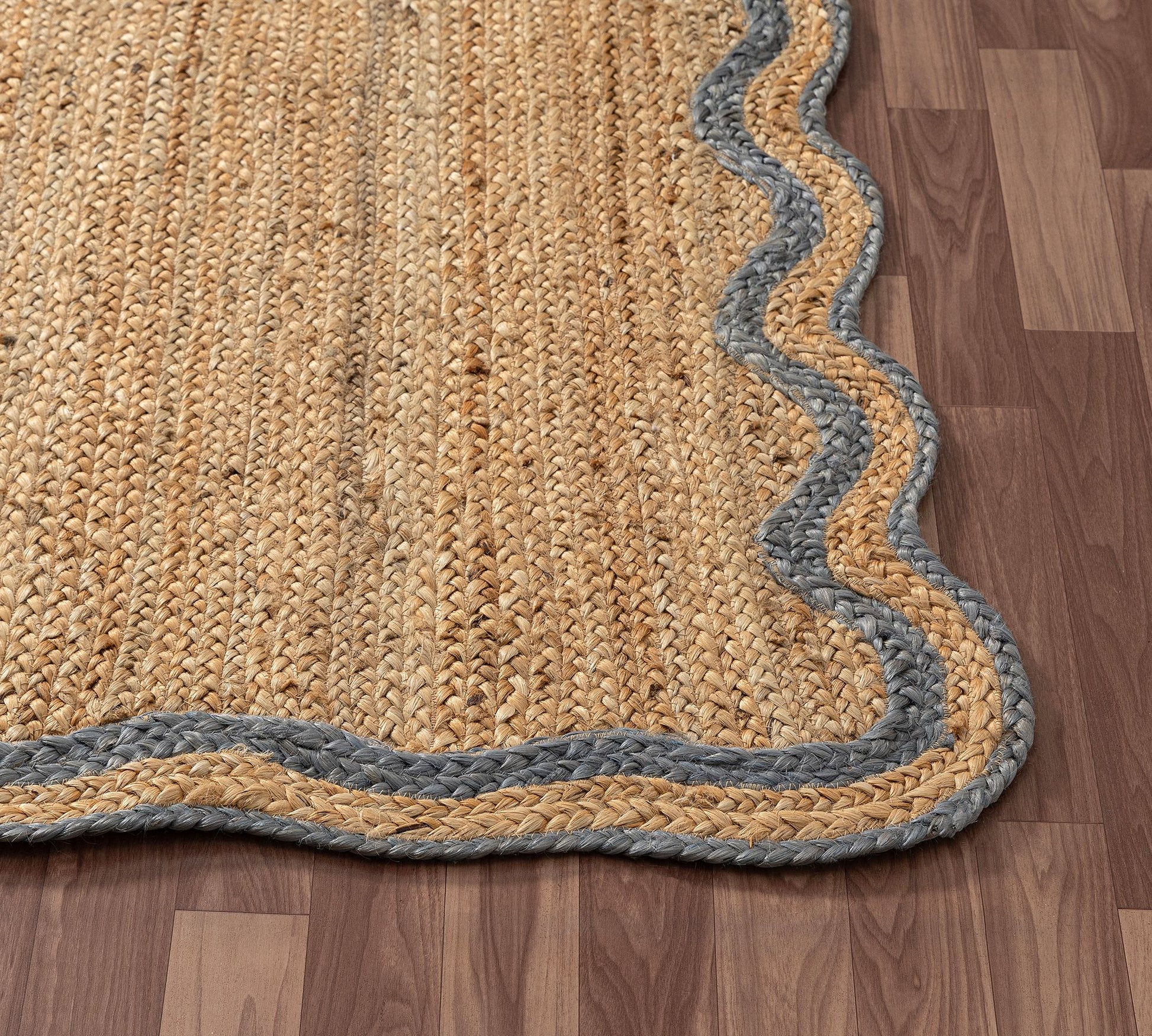 Olivya Jute Scallop Rug Natural/Denim Blue