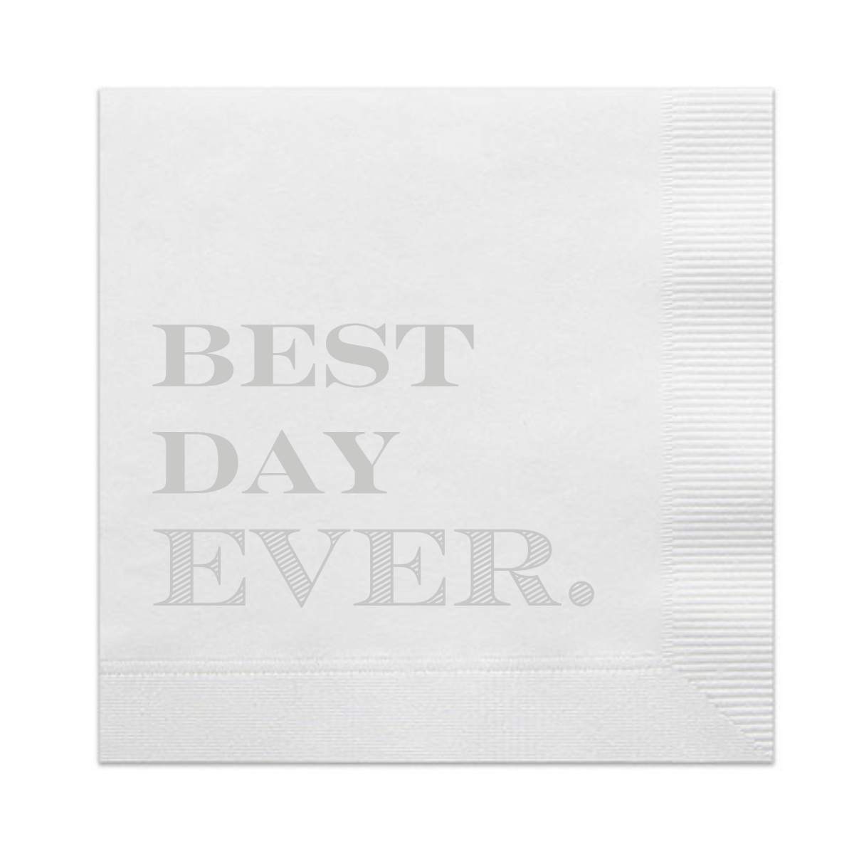Cue the confetti - it's the BEST DAY EVER! From the moment they say YES! to the last dance of the night, our "Best Day Ever" cocktail napkins are here to help you celebrate every magic moment. Perfect for engagement parties, bridal showers, and wedding receptions, these foil-stamped beauties add the perfect touch of sparkle to your wedding festivities.