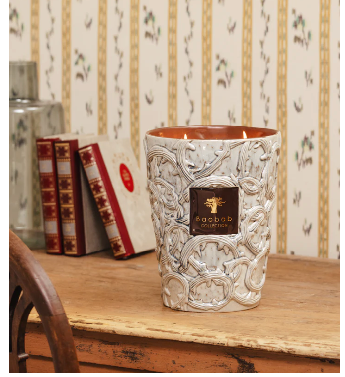 The brown and saffron yellow tones of the design on the glass are in perfect harmony with the woody, spicy fragrance. The candle becomes an ethnic decorative object, in keeping with our brand DNA.