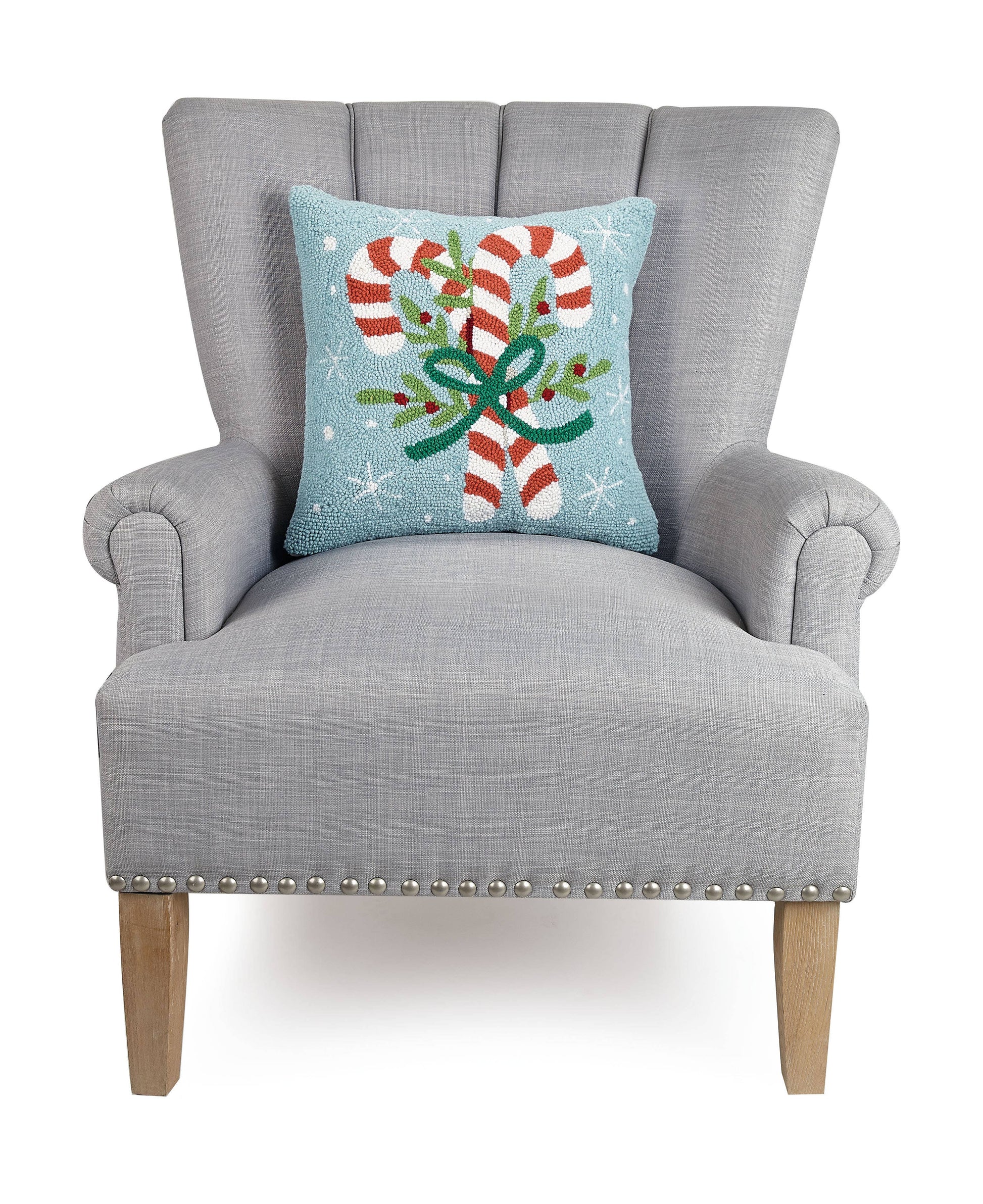The festive candy cane design pairs timeless craftsmanship with practical comfort—complete with a polyester insert and concealed zipper for easy care.