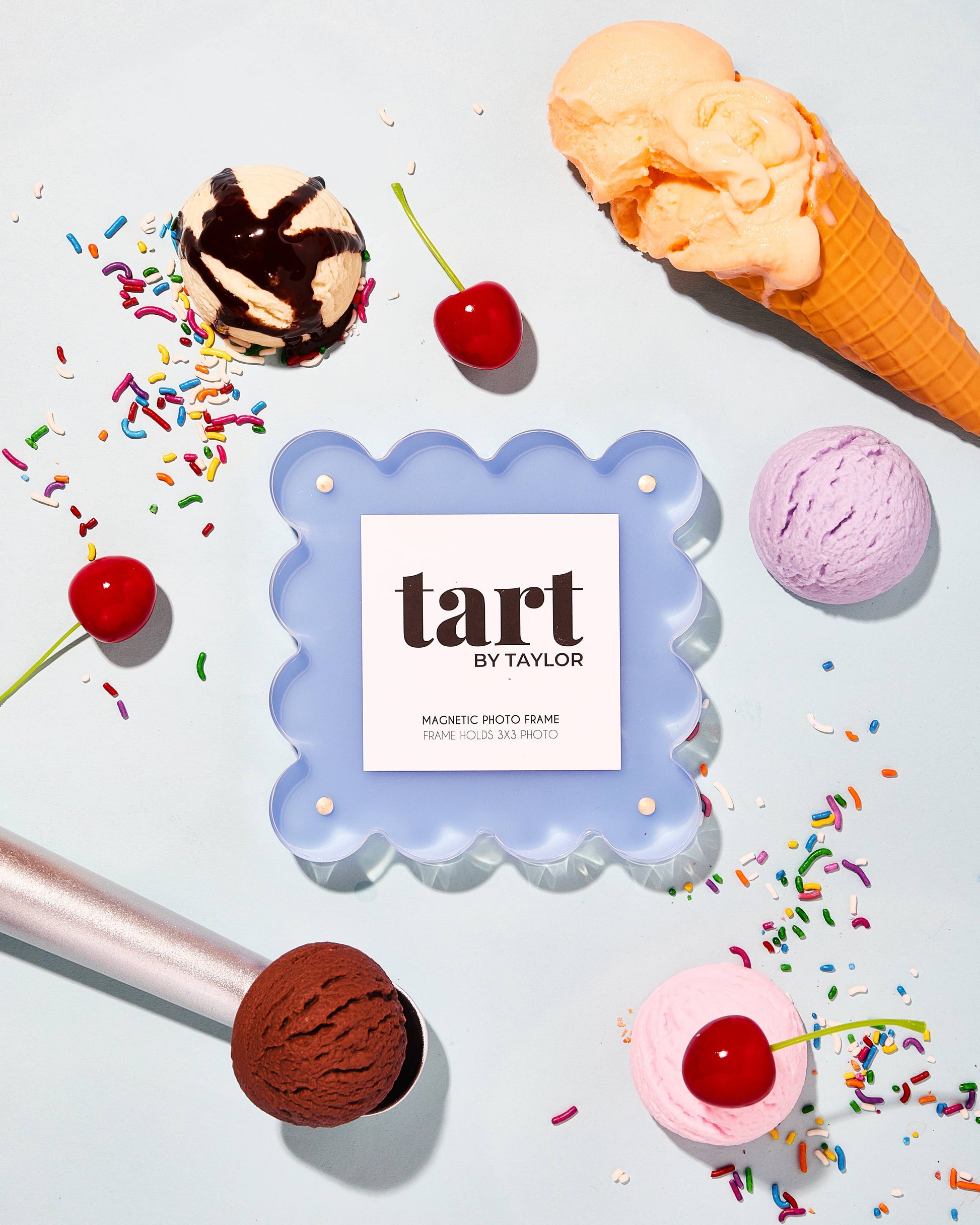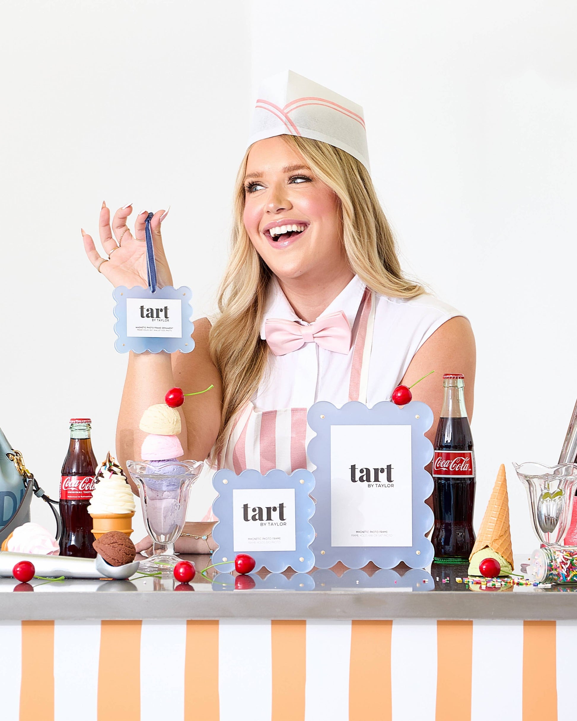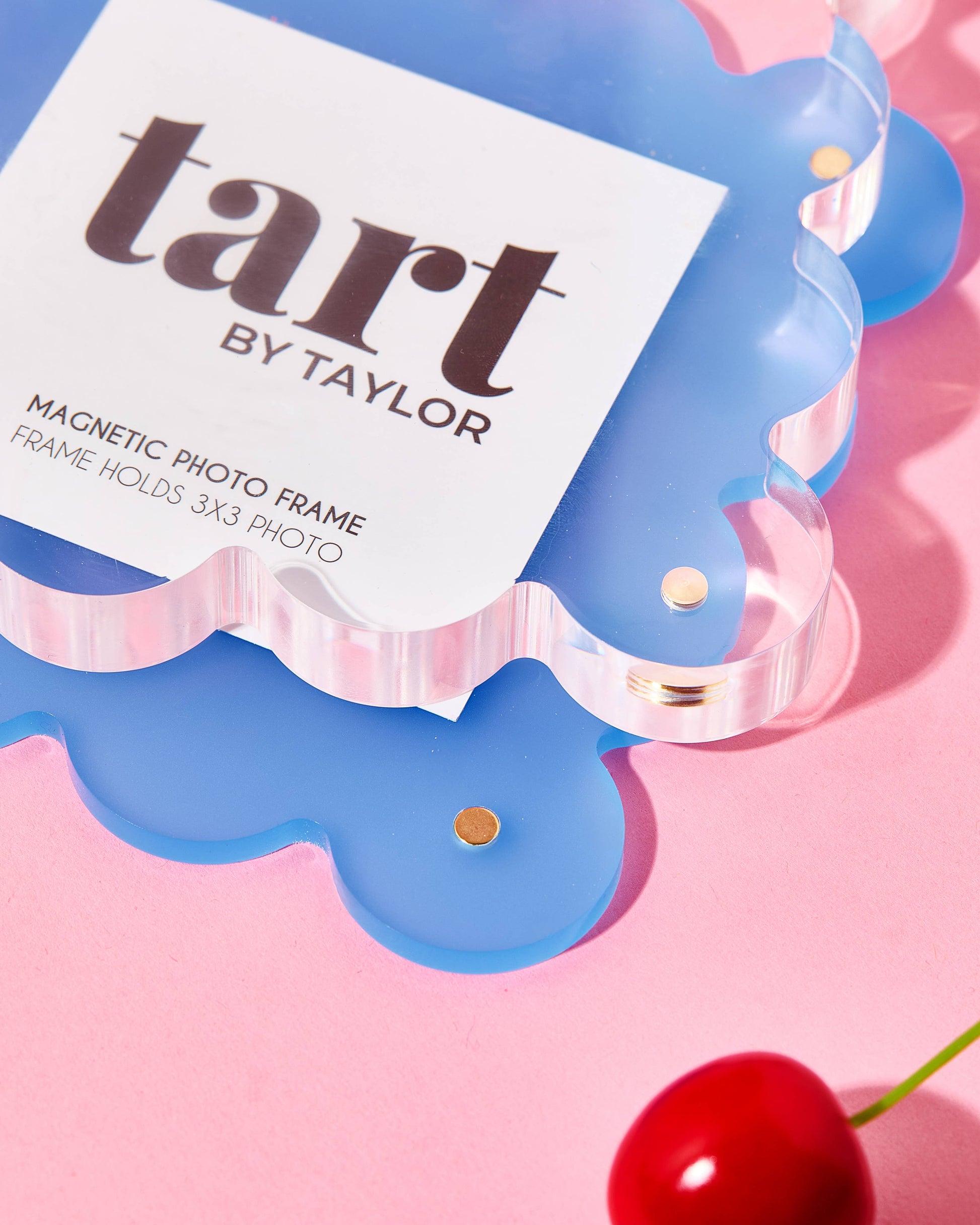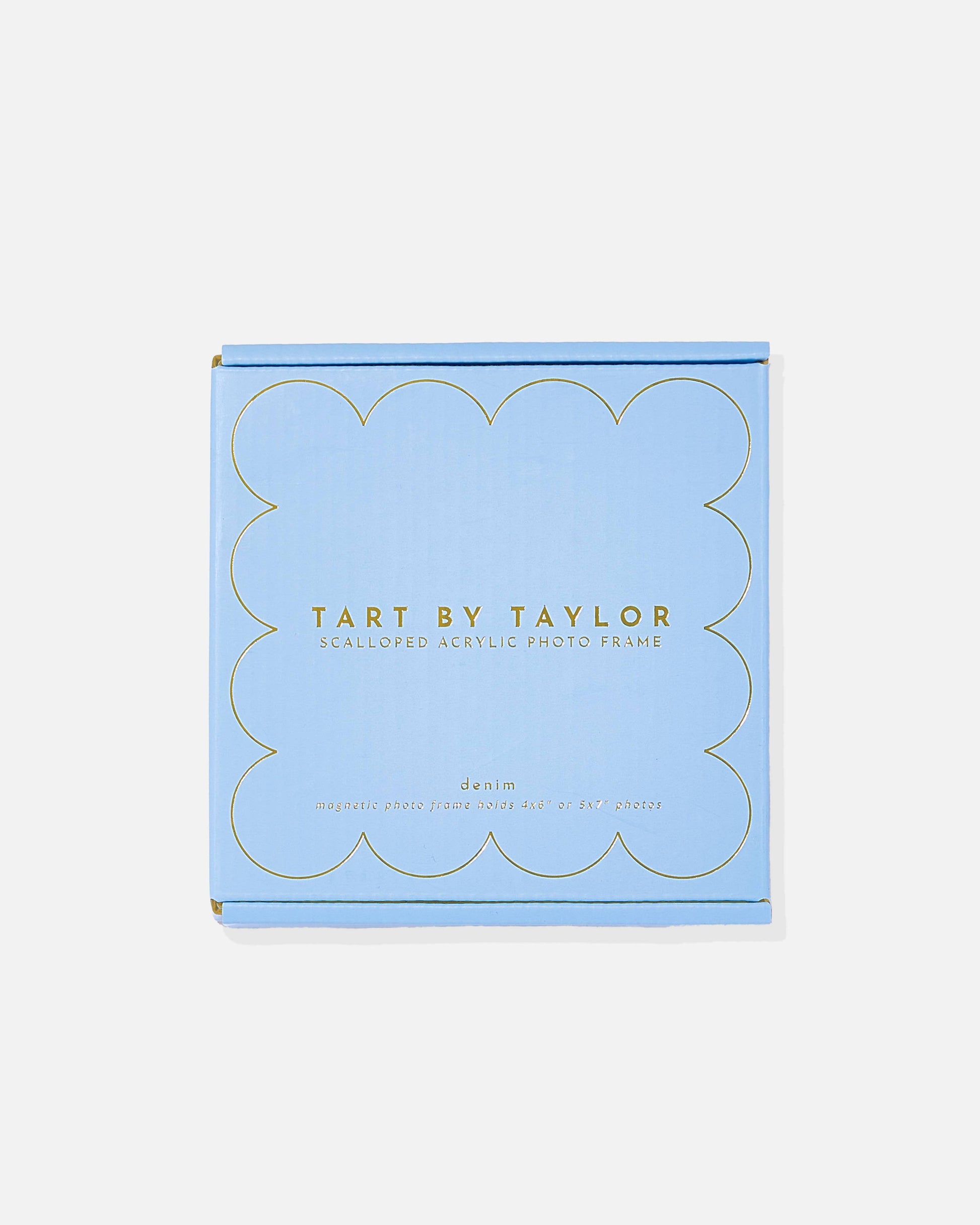 Display your favorite moments with understated elegance using this denim blue acrylic frame. The scalloped edges provide subtle visual interest while maintaining a sophisticated aesthetic.