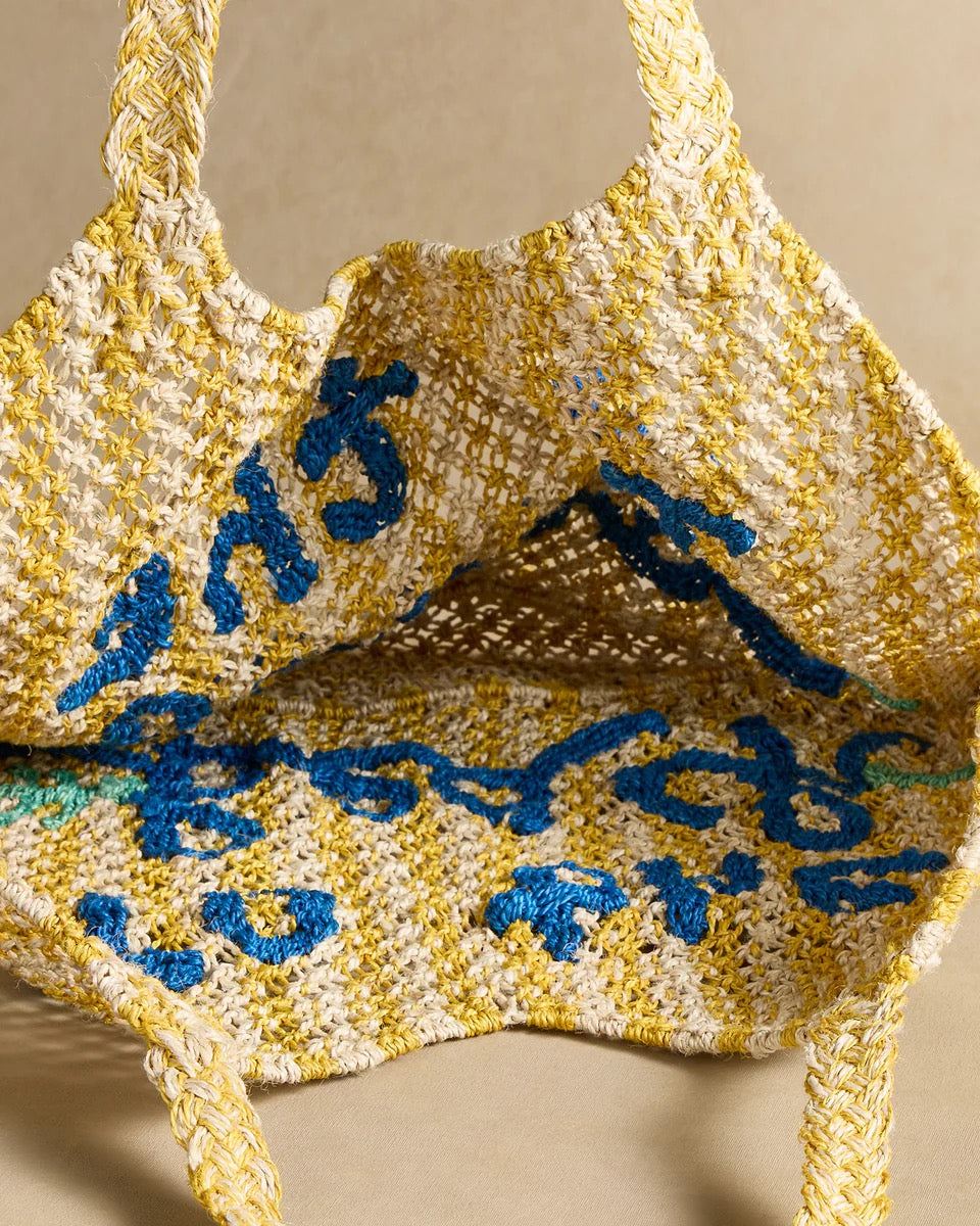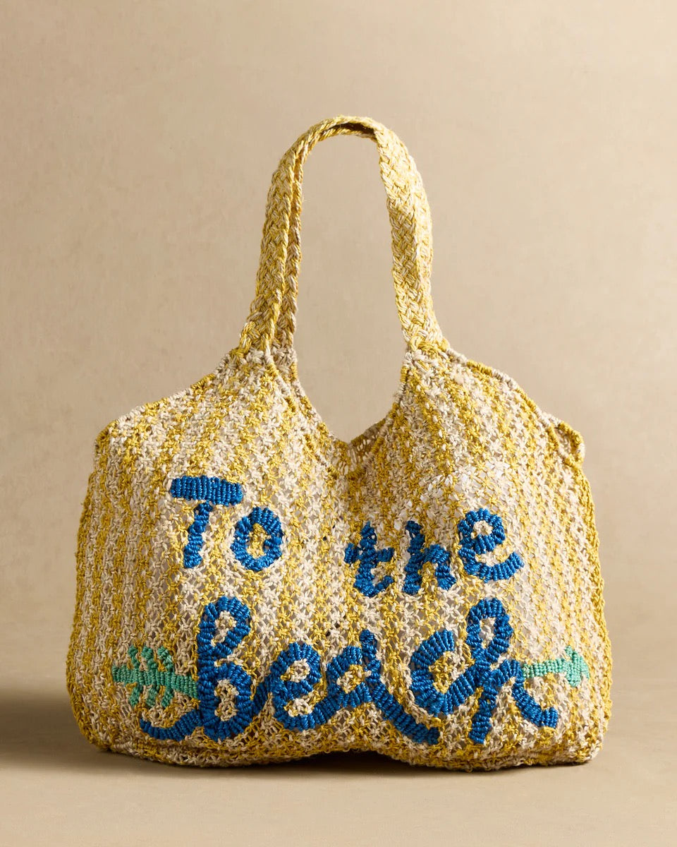 This easy-breezy beach yellow bag is handcrafted by artisan women in Bangladesh for The Jacksons. Easy to pack and perfect for your next day at the beach, and leave the sand at home. Just throw it over your shoulder and go!