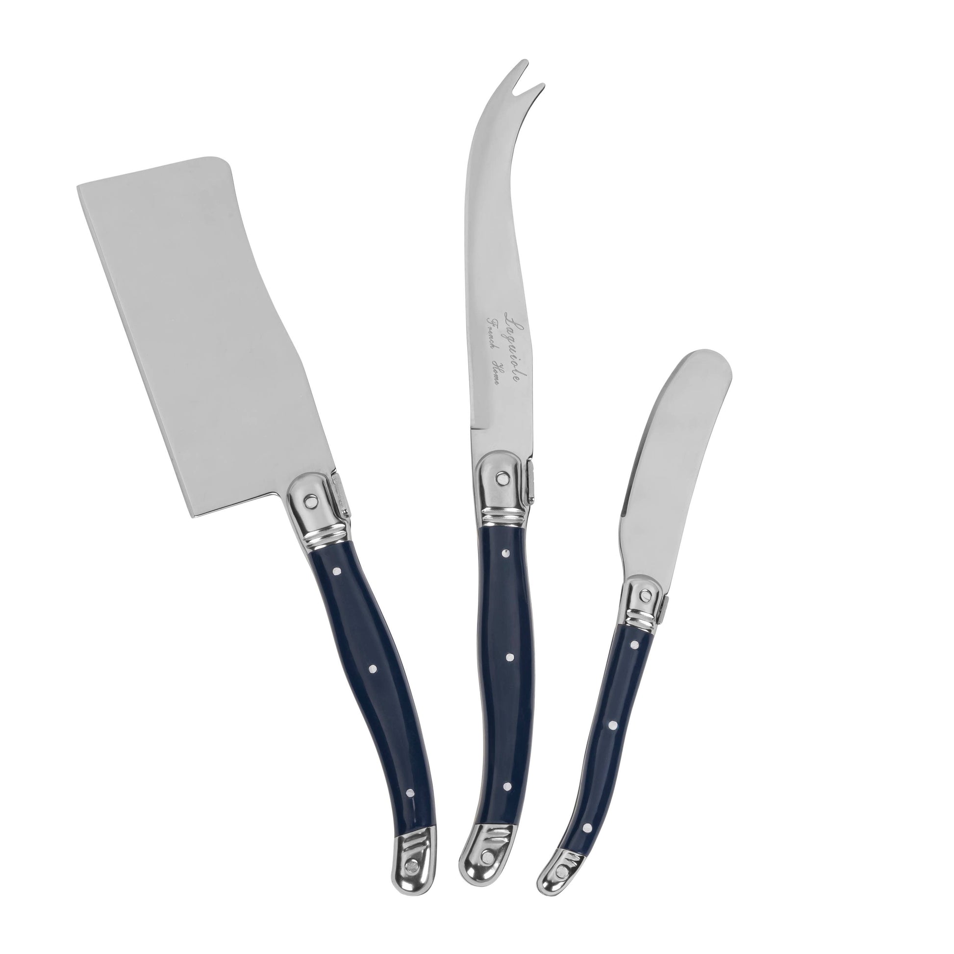 French Home 3-Piece Laguiole Cheese Knife Set with Navy Hand