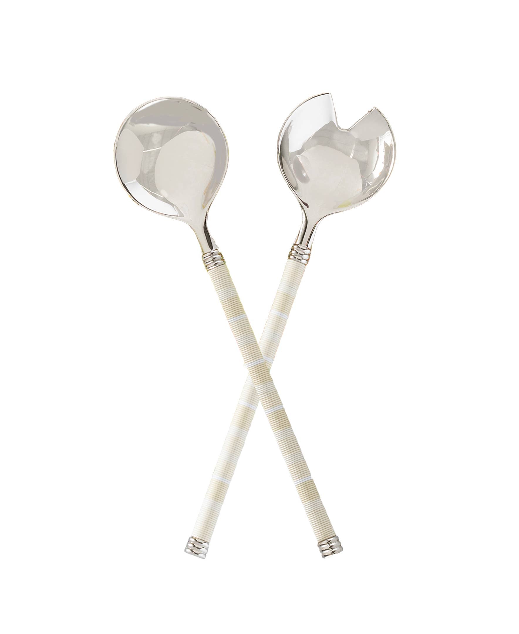 The handles of these stunning salad servers feature sophisticated and elevated neutrals in shades of creamy ivory, crisp white, and elegant taupe.