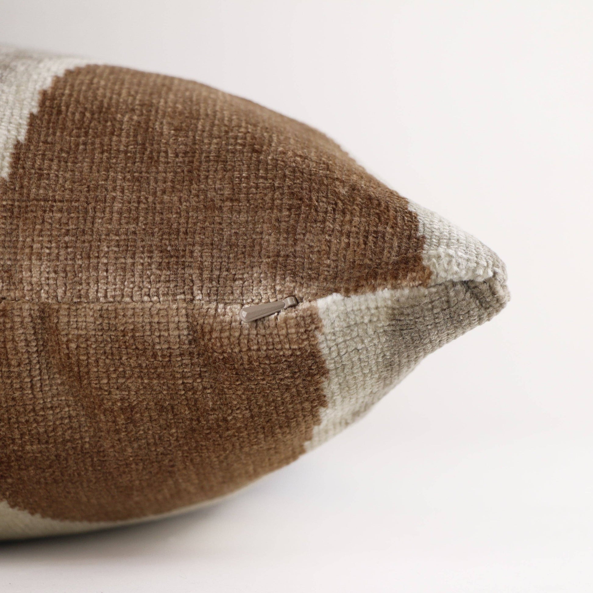 Harlow Camel Taupe Charcoal Velvet Throw Pillow: Umber / 22x22"