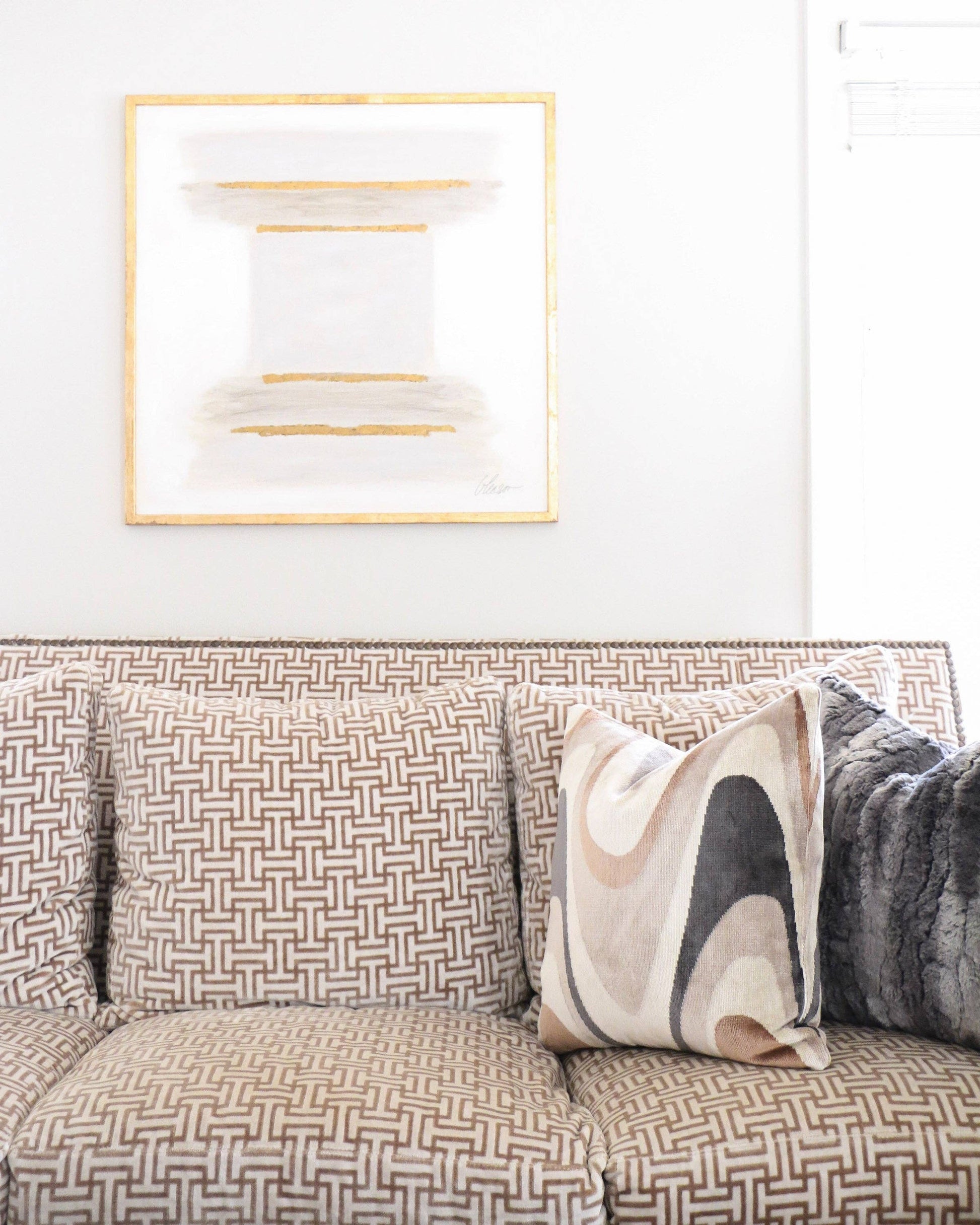 Introducing Harlow - a classic addition to your home decor. This elegant pillow features a whimsical wave pattern in a beautiful palette of camel, taupe, and charcoal velvet. Elevate your living space with Harlow's timeless design and luxurious texture. With an identical front and back, this pillow will look good from any angle.