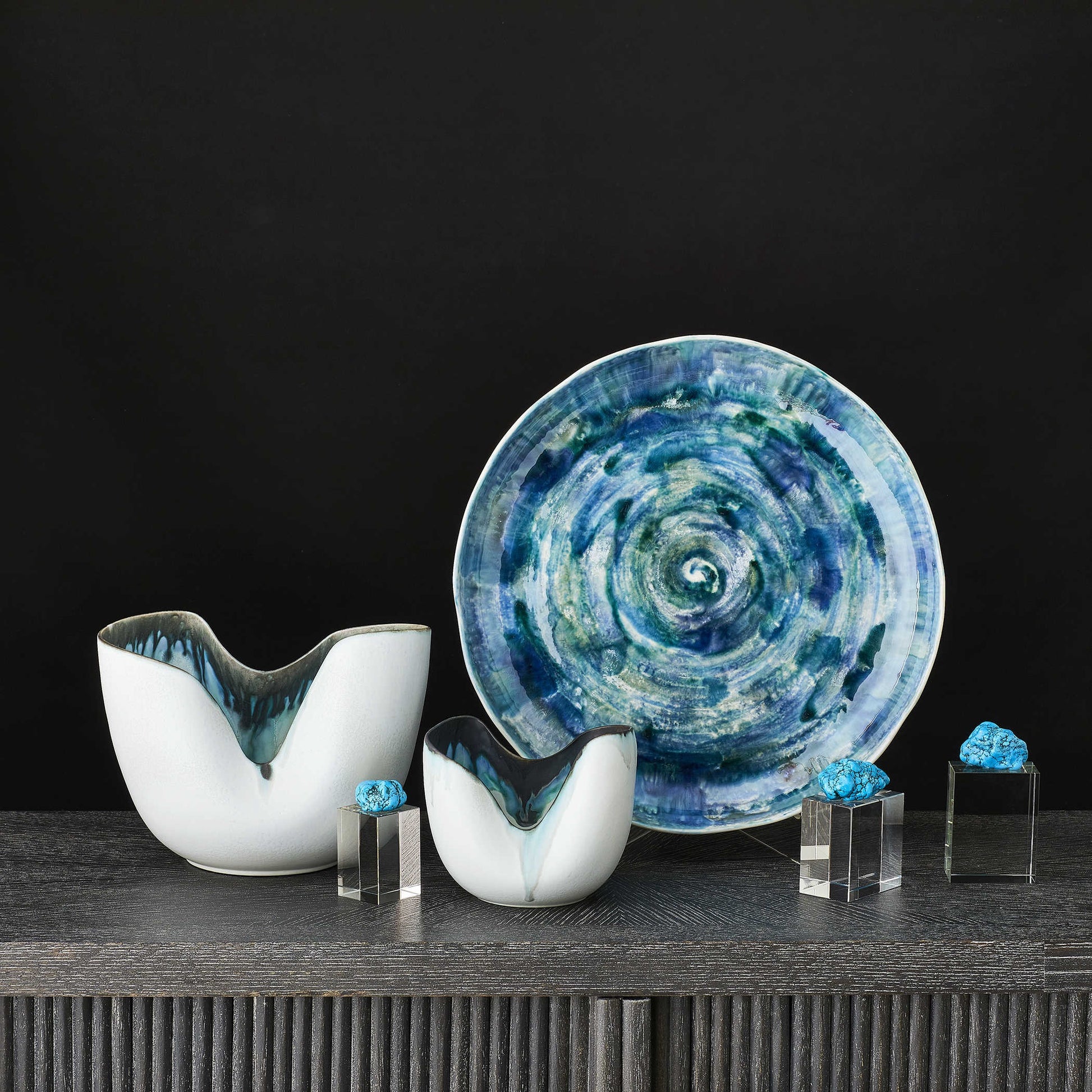 Rich in texture and detail, this ceramic vase was molded from an authentic wicker basket. Subtle matte white pumice glaze enhances the texture and lends to the impression of a lost family relic rediscovered.