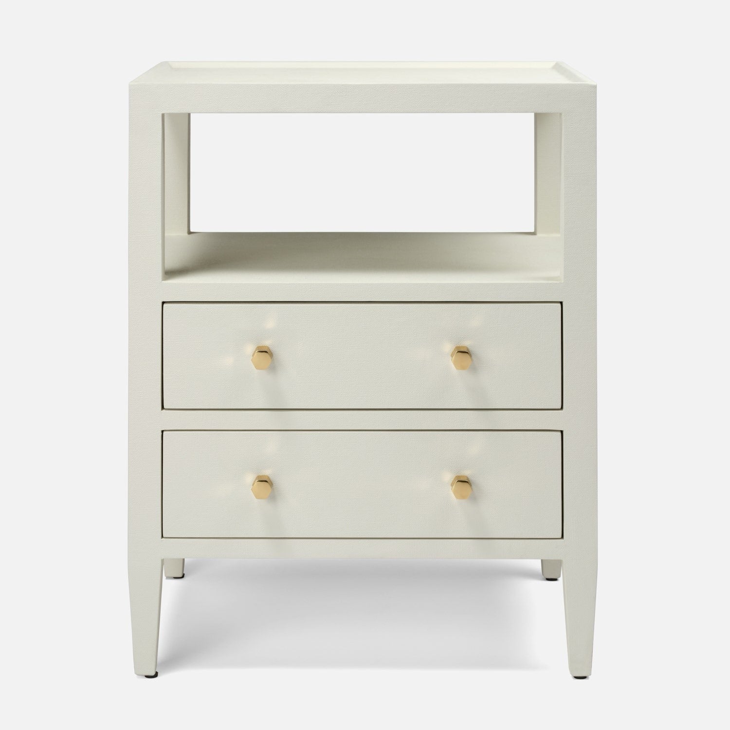 Fully finished on four sides and drawers. Bottom-mount European glides are among the many details that set it above other linen nightstands available on the market in terms of quality and craftsmanship.
