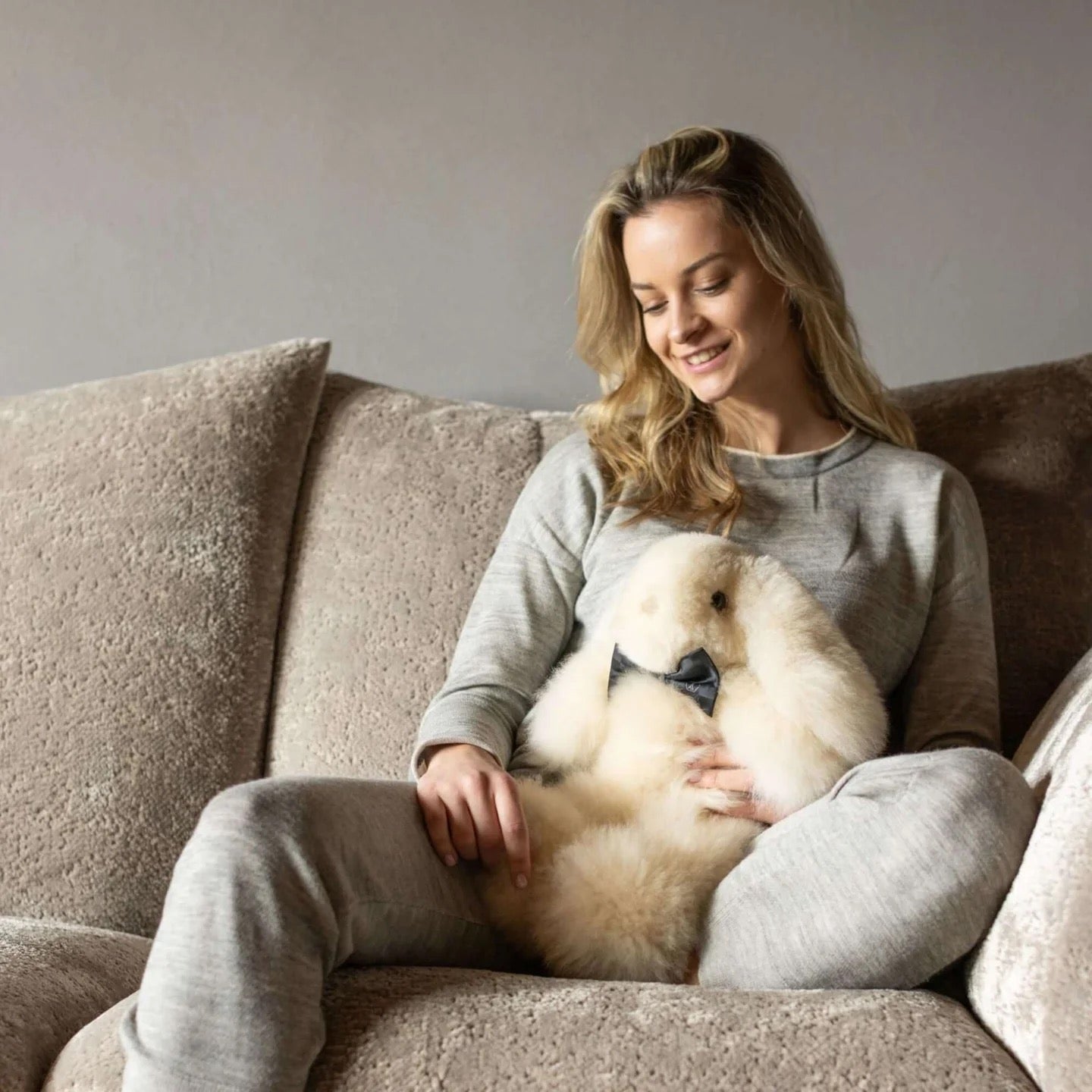 Our new addition to the stuffed animals: MILO the rabbit. With his irresistibly cute facial expression and his inimitably soft feel, he not only seduces children's eyes, but also makes adults' hearts beat faster. Let yourself be enchanted by the incredibly fluffy alpaca fiber, which also gives a gentle warmth effect