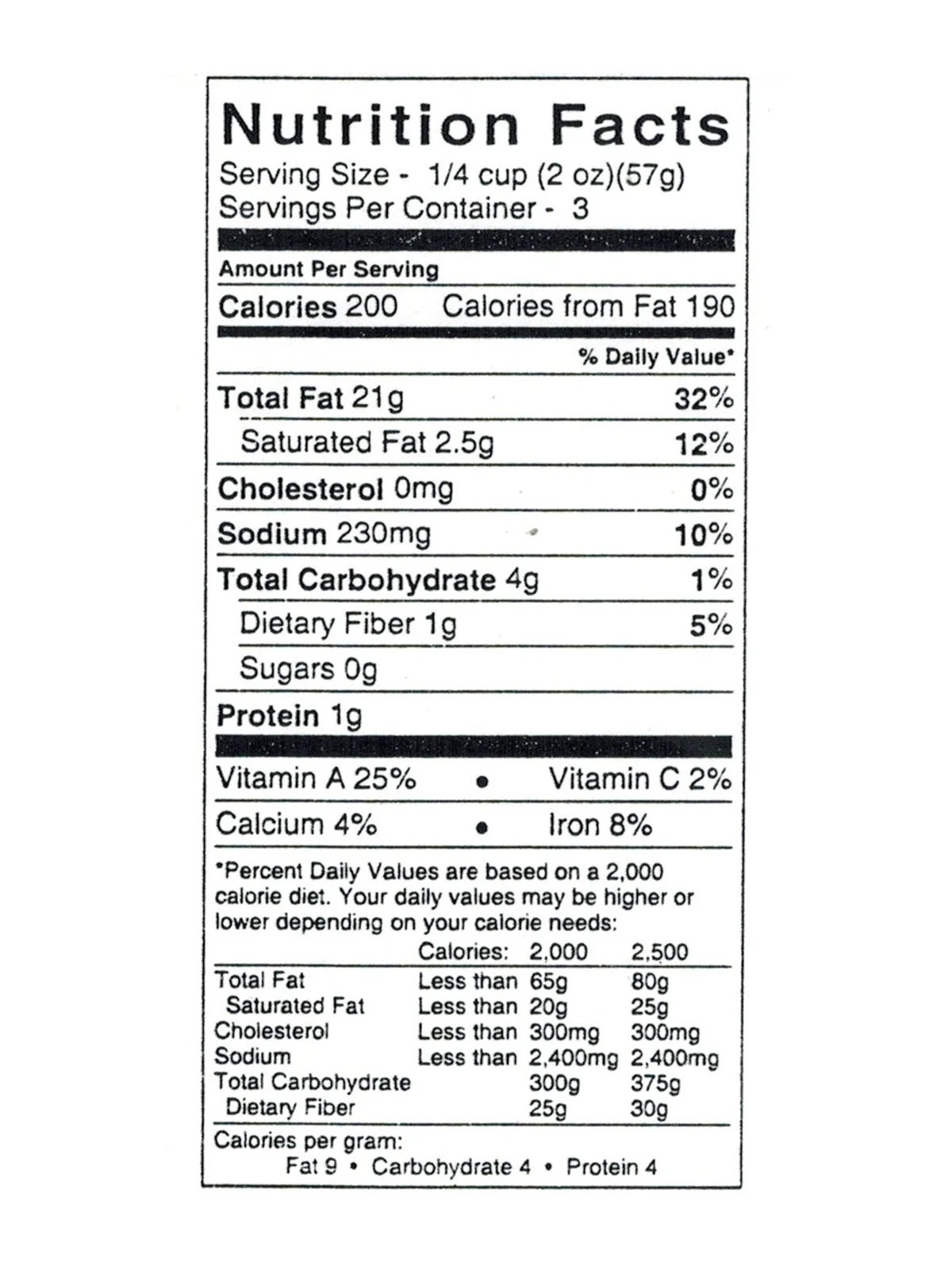 Ingredients: Kalamata olives, extra virgin olive oil, expeller-pressed canola oil, garlic, lemon juice