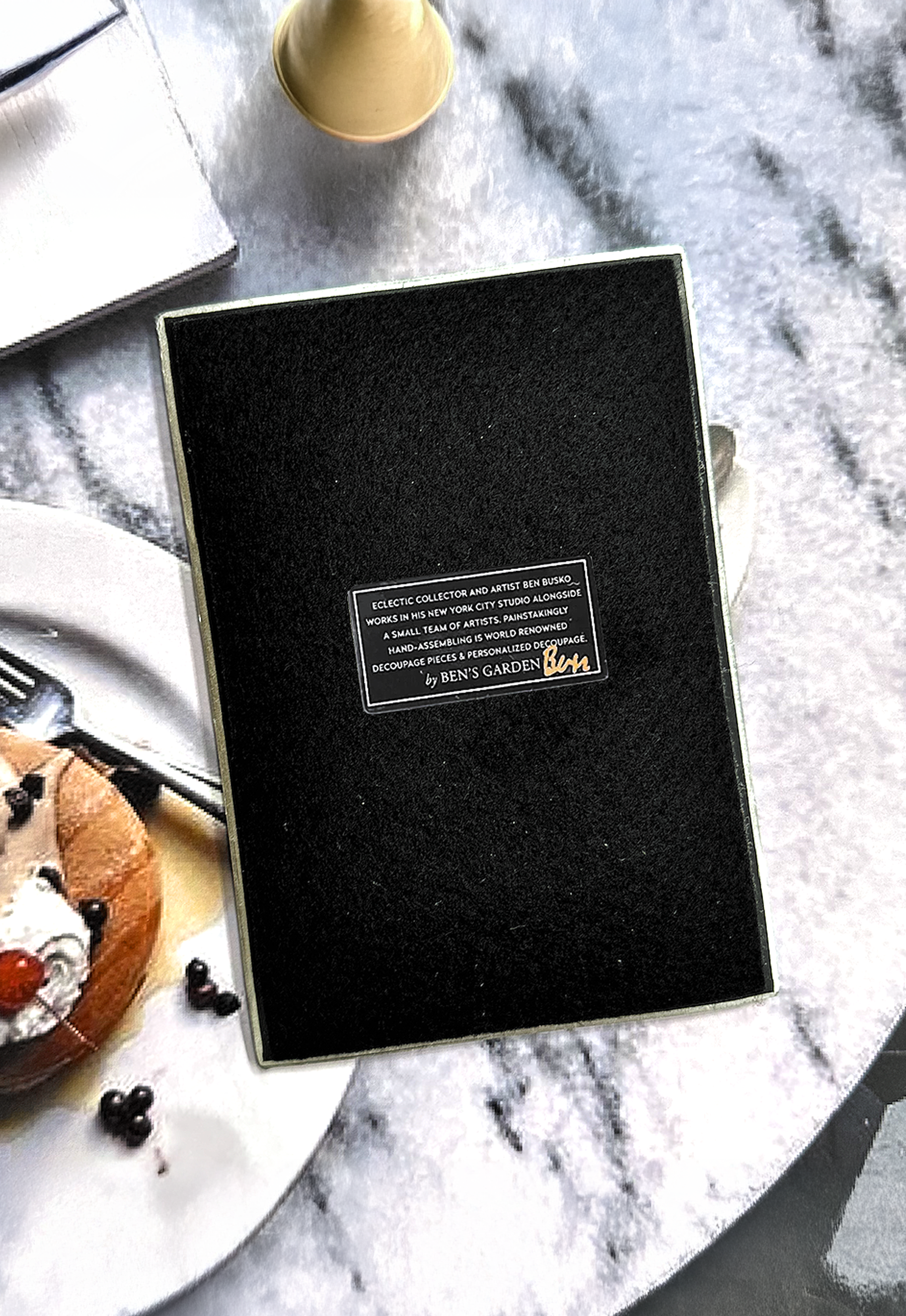 Each tray reflects Ben’s signature aesthetic for the charming and unexpected, blending classic romance with a collector’s eye for detail. Individually hand-signed by Ben, every piece is a testament to craftsmanship and originality.