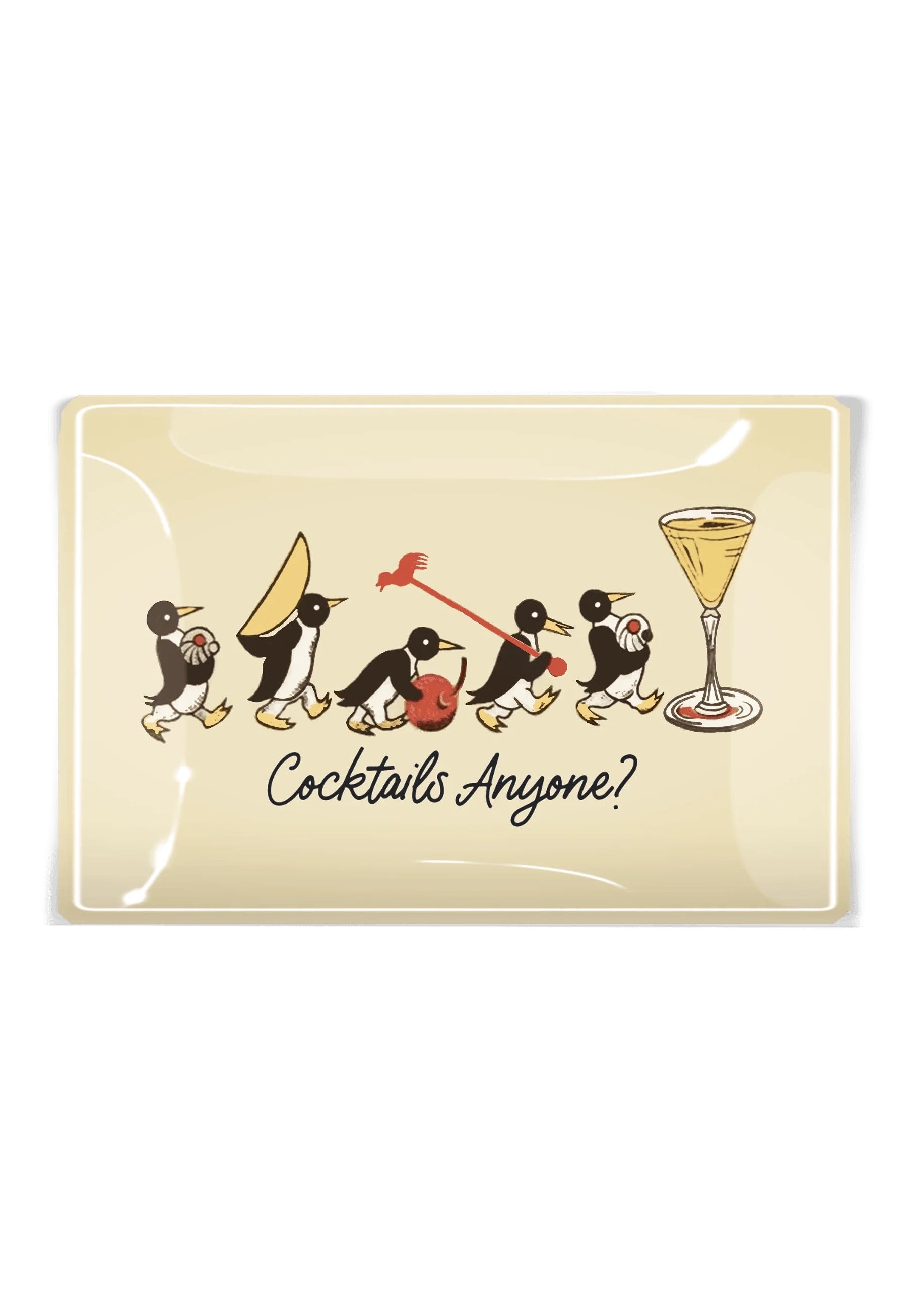 A playful nod to good company and better cocktails, this Penguins Marching “Cocktails Anyone?” Glass Decoupage Tray brings a touch of vintage whimsy to any gathering. Handcrafted in our New York studio in the classic French découpage tradition, this bent-glass tray features a charming parade of penguins — party hats, toothpicks, and martinis in tow — captured in Ben’s signature style that celebrates the quirky and the unexpected.