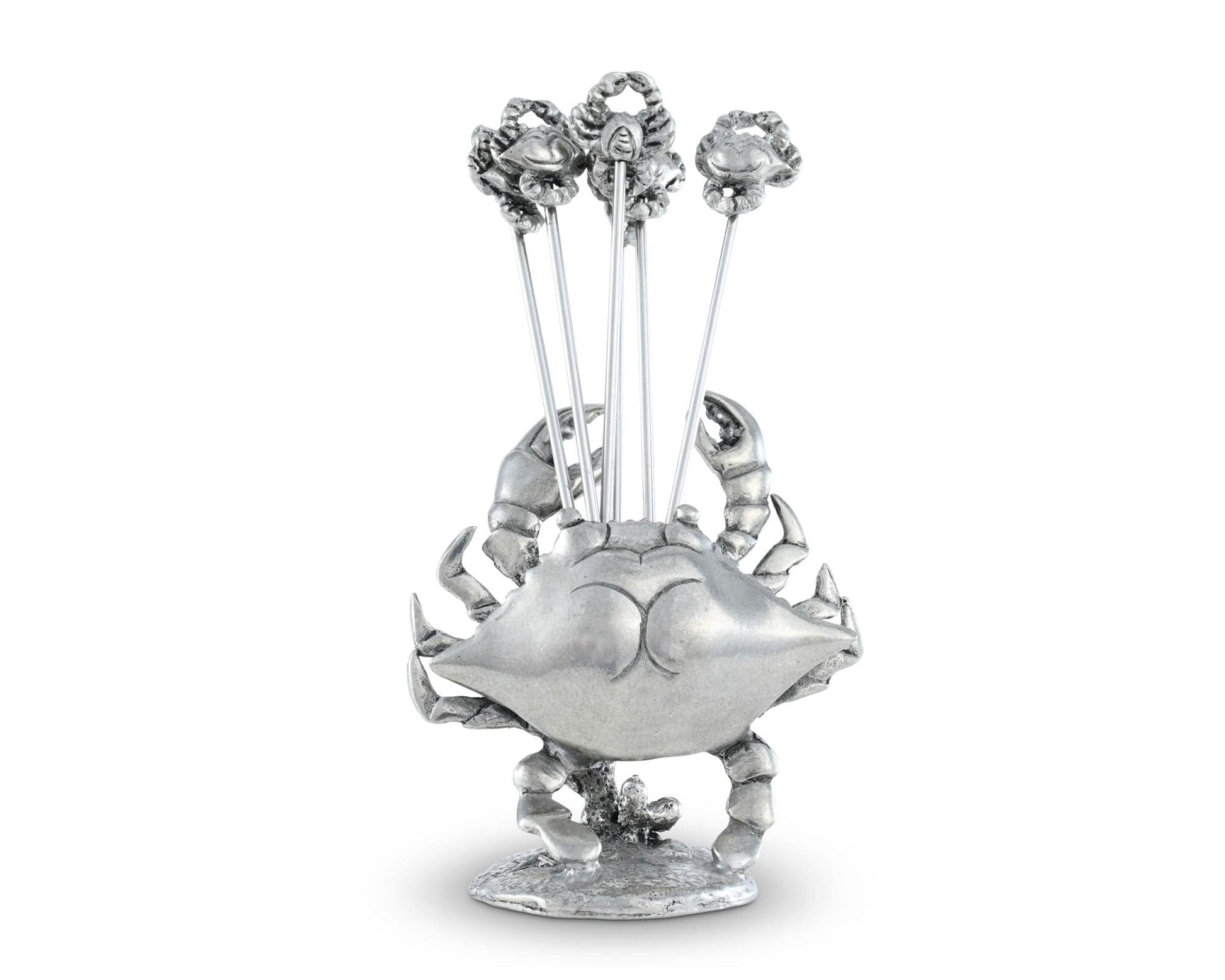 Vagabond House's Blue Crab Cheese Pick Set is a remarkable companion for an extraordinary seafood feast. Meticulously sculpted in Pewter, our cheese pick set is a tribute to Chesapeake's finest, the savory and beautiful Maryland Blue Crab. Part of our exclusive Sea and Shore Collection, its compact size of 2.5"W x 2"L x 4"T inches makes it perfect for serving your favorite cheese during intimate gatherings or grand occasions.