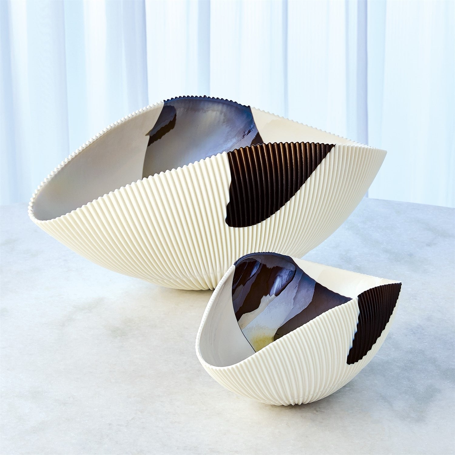 Our Pleated Bowls are glass spun in a centrifuge and centrally fused for perfect pleating