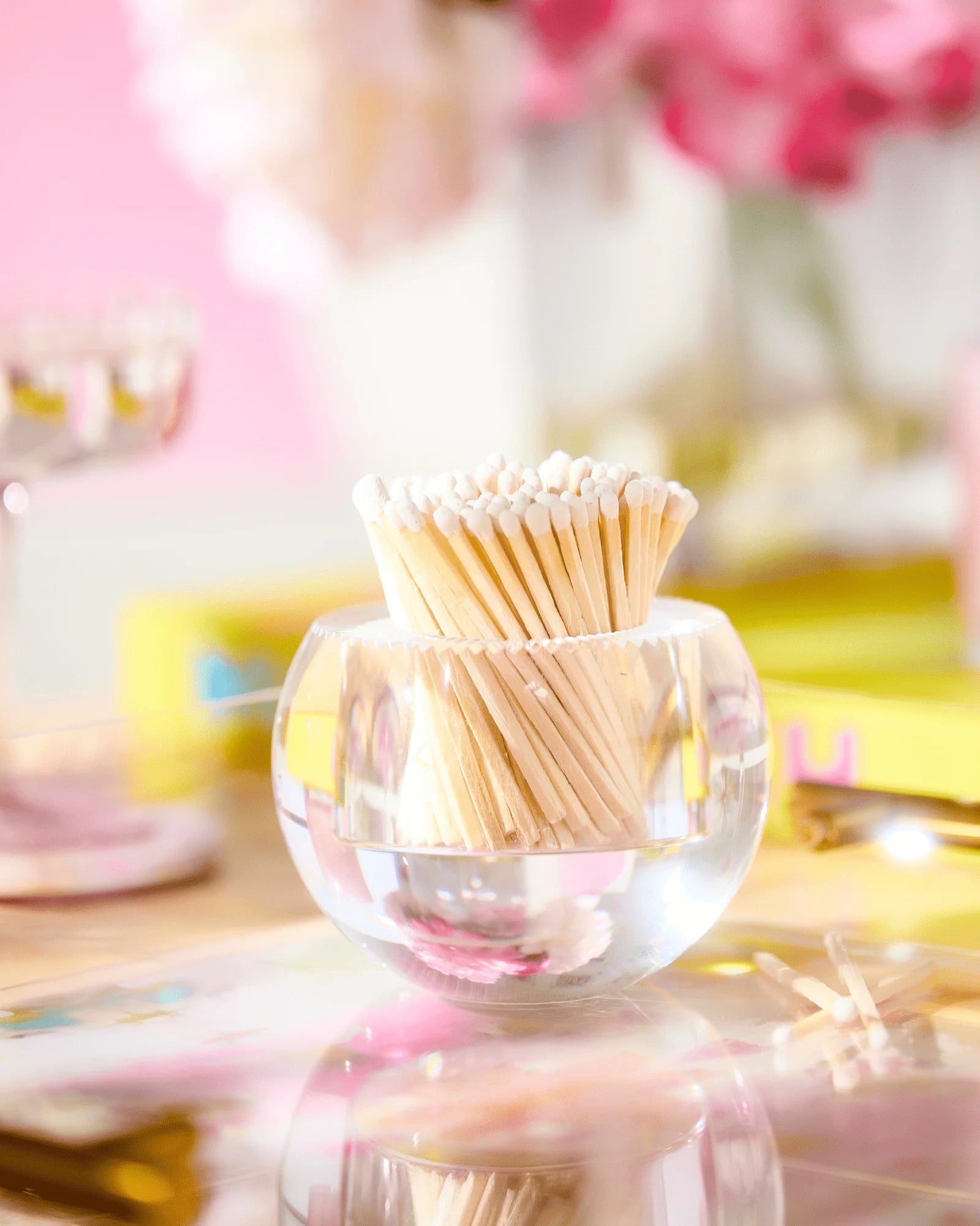 Get fired up with our Acrylic Match Striker! This acrylic match strike is the perfect accessory for your coffee table, desk, or any space that could use a little flair. It features a strike pad on the bottom and comes with 140 matches. Keep this baby ready for any occasion, let's get lit!