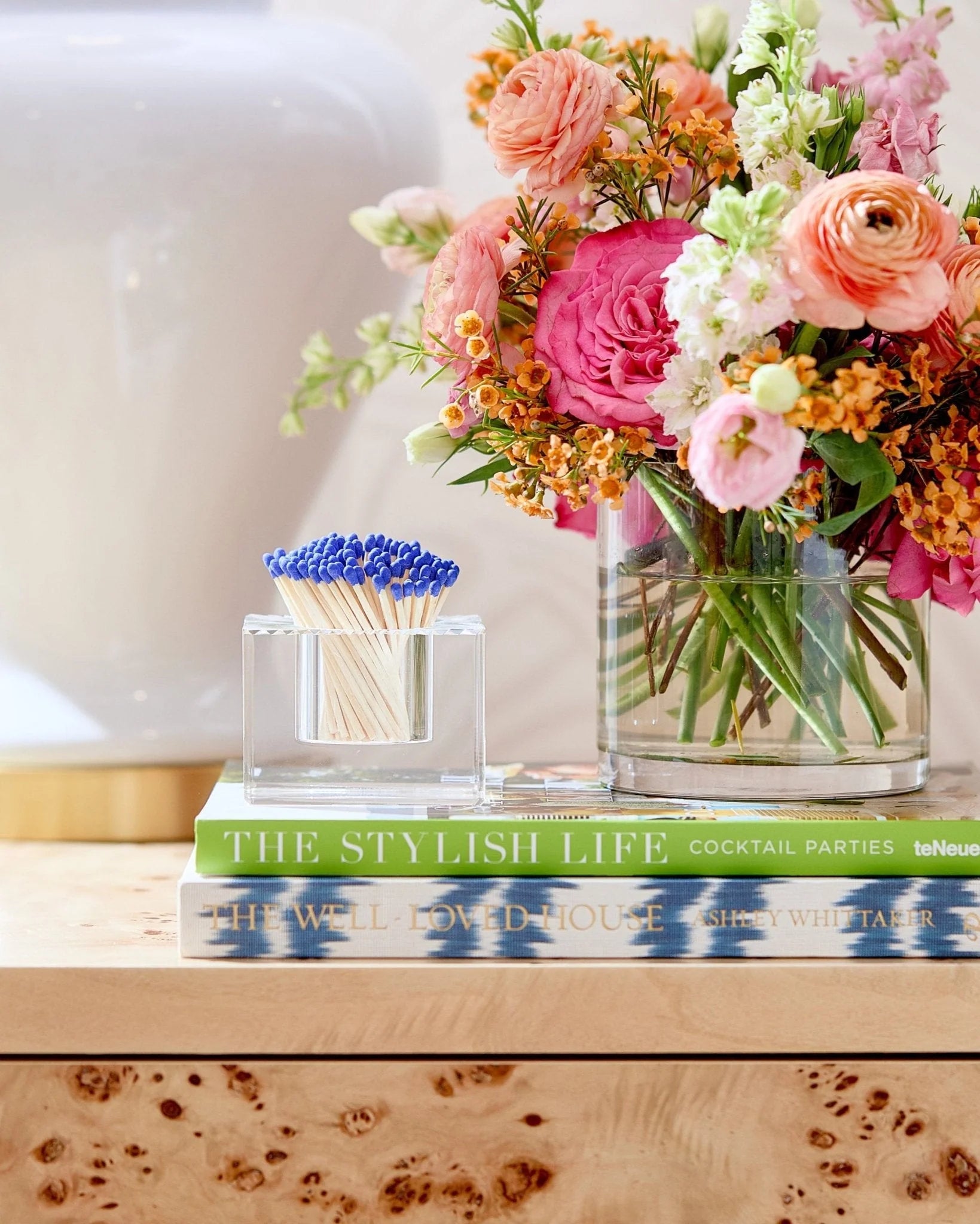 Get fired up with our square Acrylic Match Striker! This acrylic match strike is the perfect accessory for your coffee table, desk, or any space that could use a little flair with these beautiful royal blue matches. It features a strike pad on the bottom and comes with 140 matches. Keep this baby ready for any occasion, let's get lit!