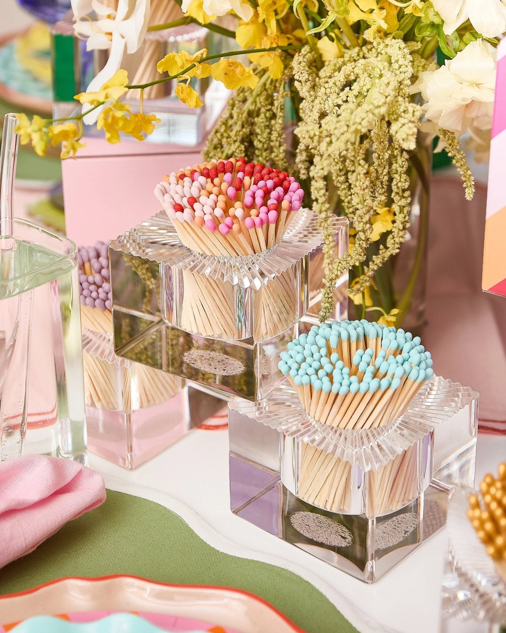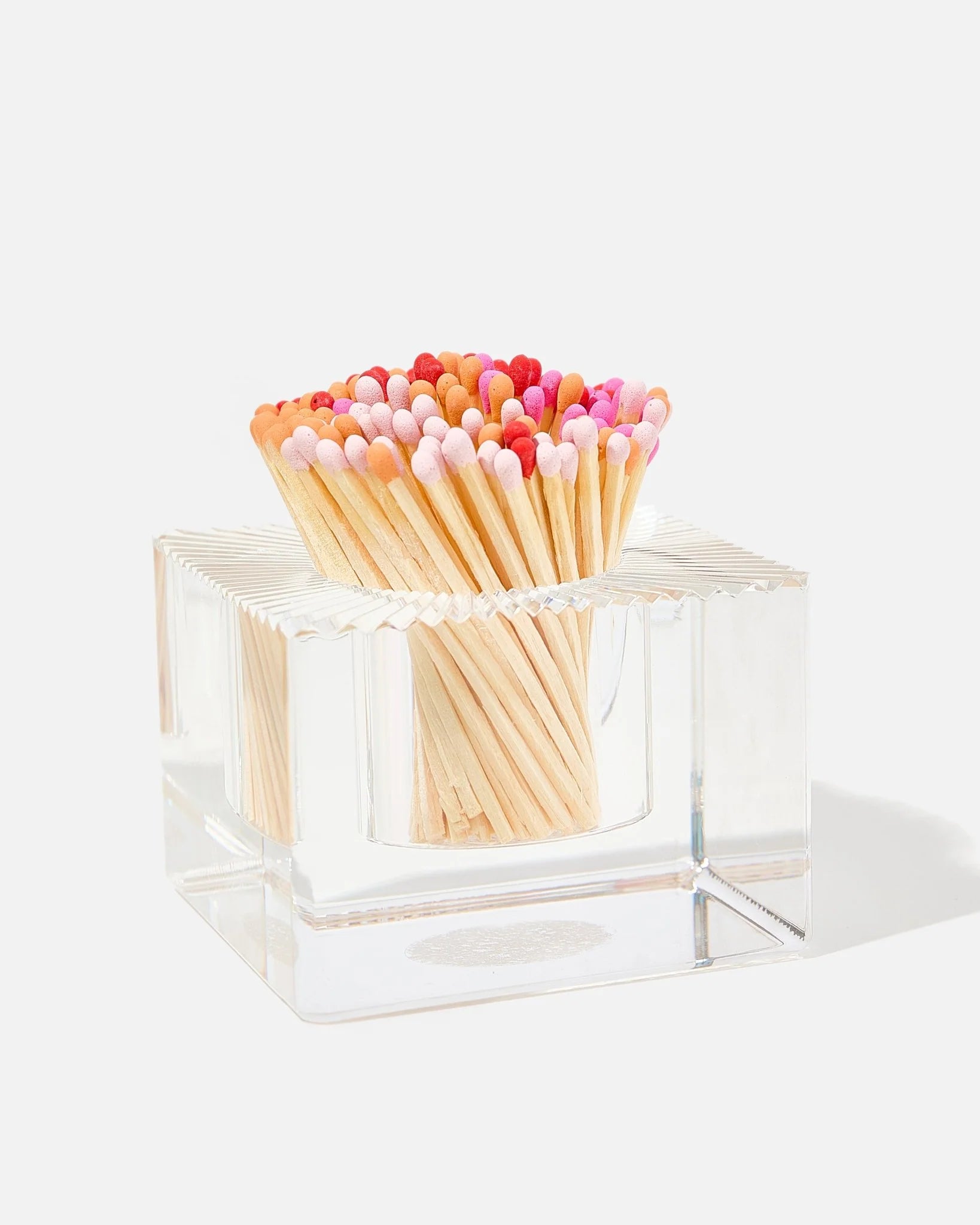 Get fired up with our square Acrylic Match Striker! This acrylic match strike is the perfect accessory for your coffee table, desk, or any space that could use a little flair with these bright sunset themed matches. It features a strike pad on the bottom and comes with 140 matches. Keep this baby ready for any occasion, let's get lit!