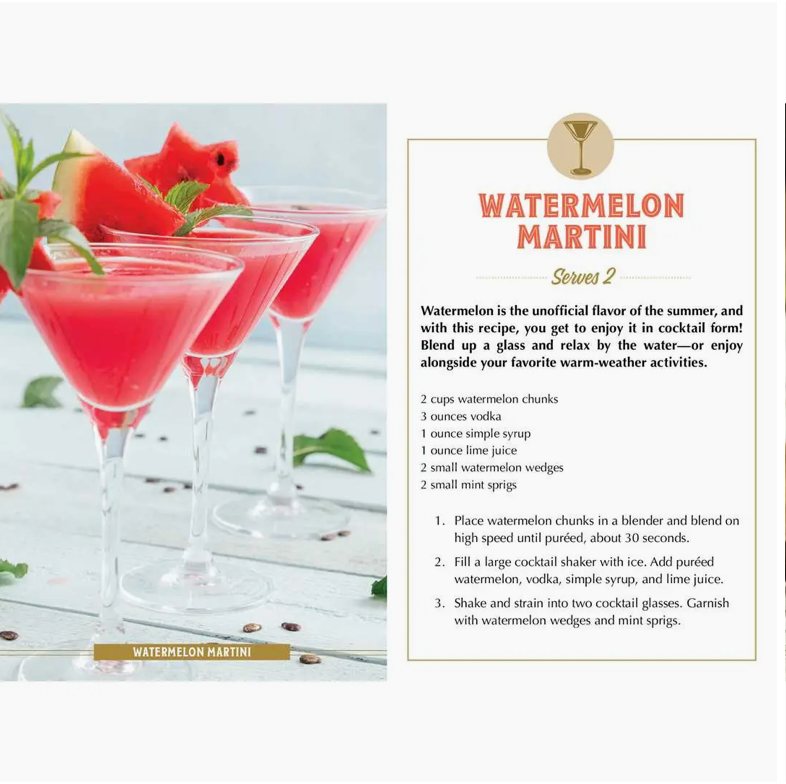 This fun and easy-to-use card deck conveniently organized by liquor features 75 weather-inspired cocktail recipes that channel the refreshing and fresh ingredients of summer!