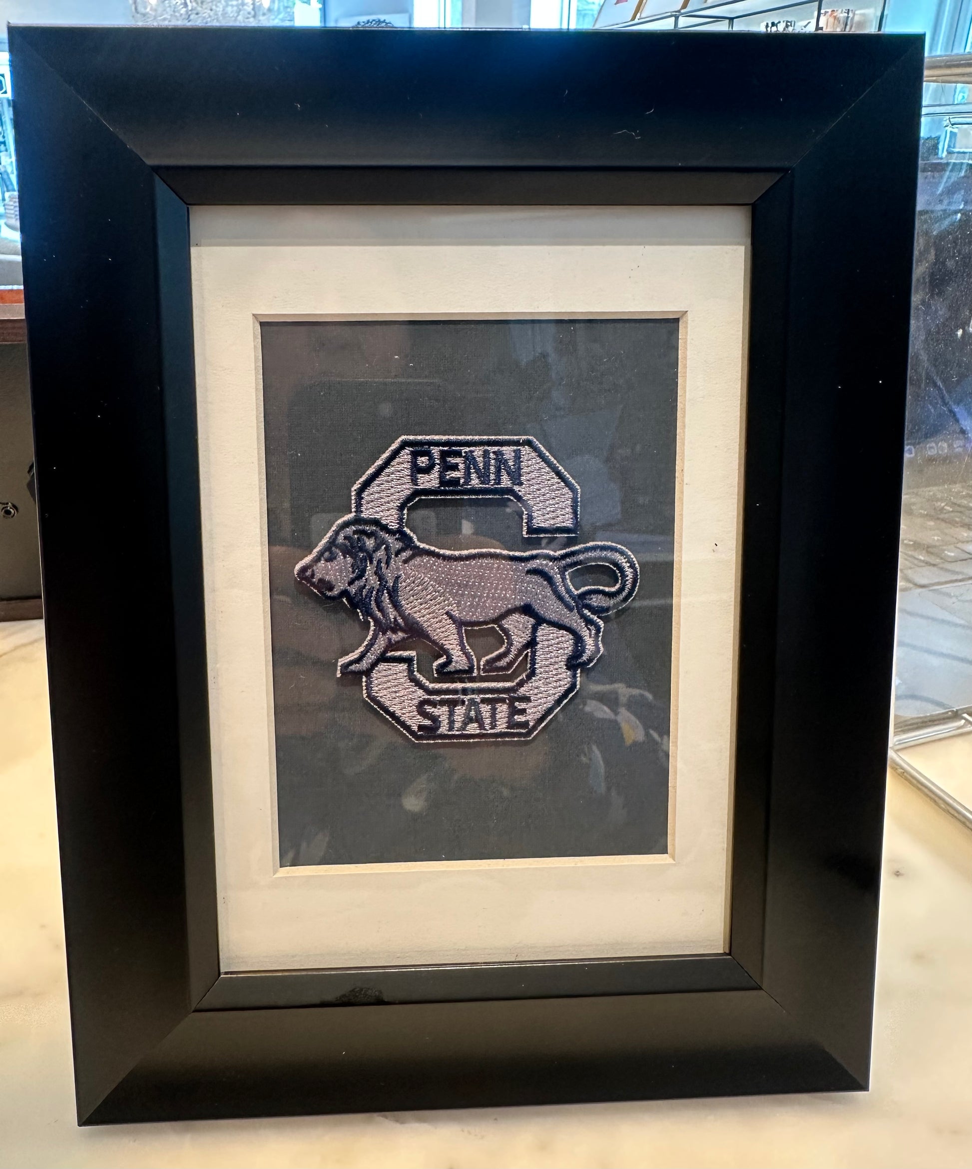Nittany Lion fans will rejoice upon receiving this framed Nittany Lion patch! Measures 7" x 9"